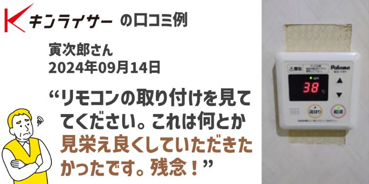 安ければ安いほど嬉しいもの。独自の長期保証を謳っている業者も居ます。しかし、工事と接客の品質が最も重要です。なぜなら、信頼できる業者でなければ、保証や改善を着実に実行してくれないからです。名前をよく聞く「キンライサー」も非上場企業。口コミを書かれてしまったということは是正してもらえなかったのでしょう。