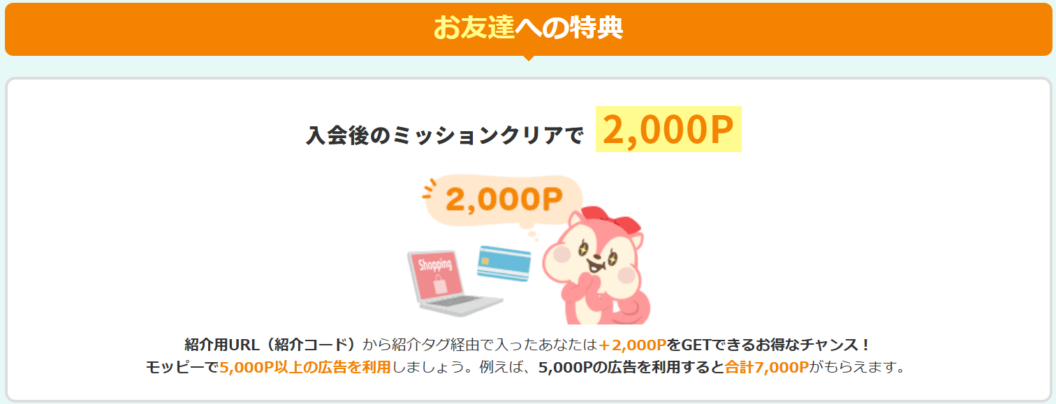 上記リンクから登録して、簡単なミッションをクリアすると、2,000ポイントのボーナスを獲得できます。5,000円分の広告を利用すると、7,000円分のポイントがもらえるわけです。